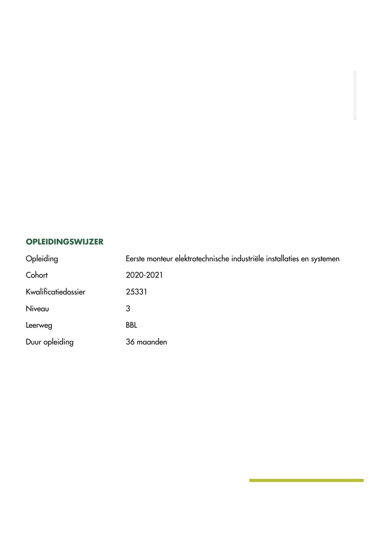 Eerste monteur elektrotechnische industriële installaties en systemen 25331BOL in cohort 2020-2021