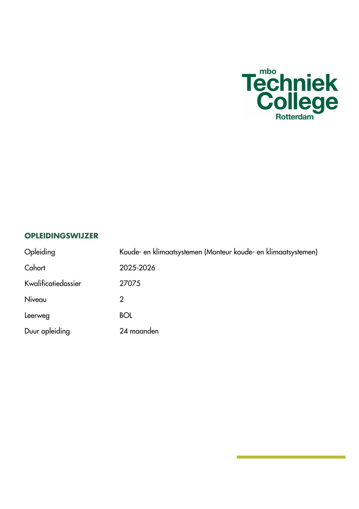 Koude- en klimaatsystemen (Monteur koude- en klimaatsystemen) 27075BOL in cohort 2025-2026