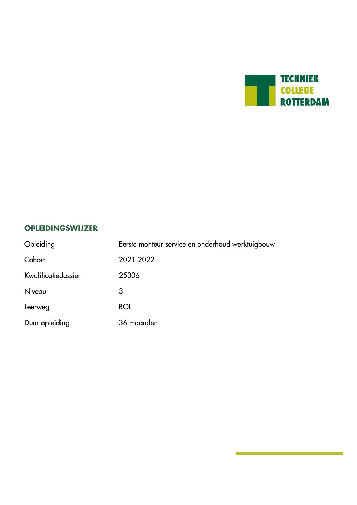 Eerste monteur service en onderhoud werktuigbouw A25306-BOL in cohort 2021-2022