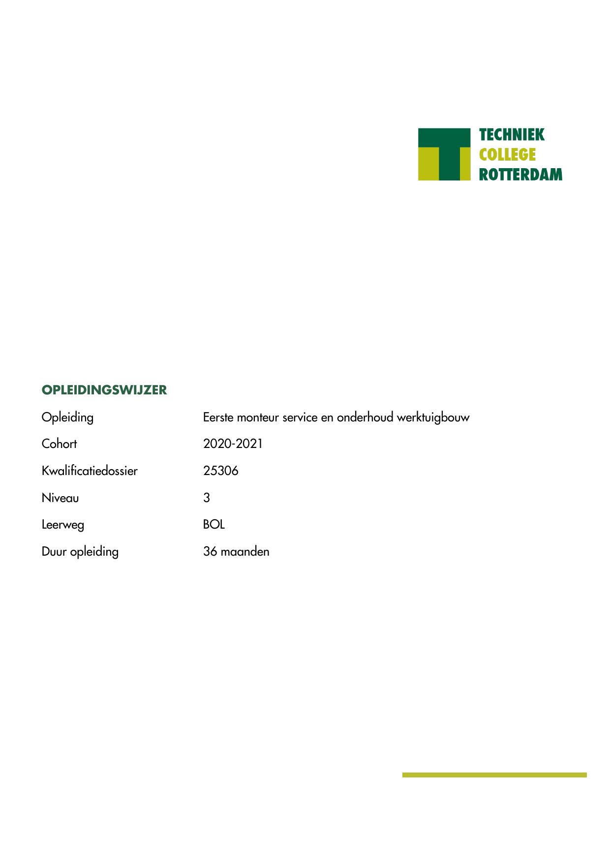 Eerste monteur service en onderhoud werktuigbouw A25306-BBL in cohort 2020-2021