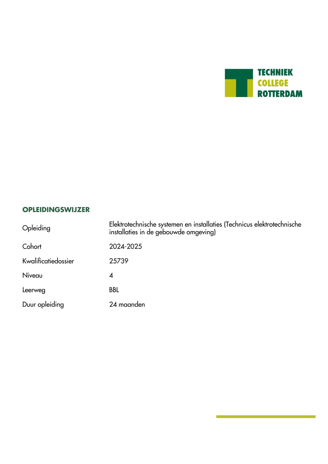 Elektrotechnische systemen en installaties (Technicus elektrotechnische installaties in de gebouwde omgeving) 25739BBL in cohort 2024-2025