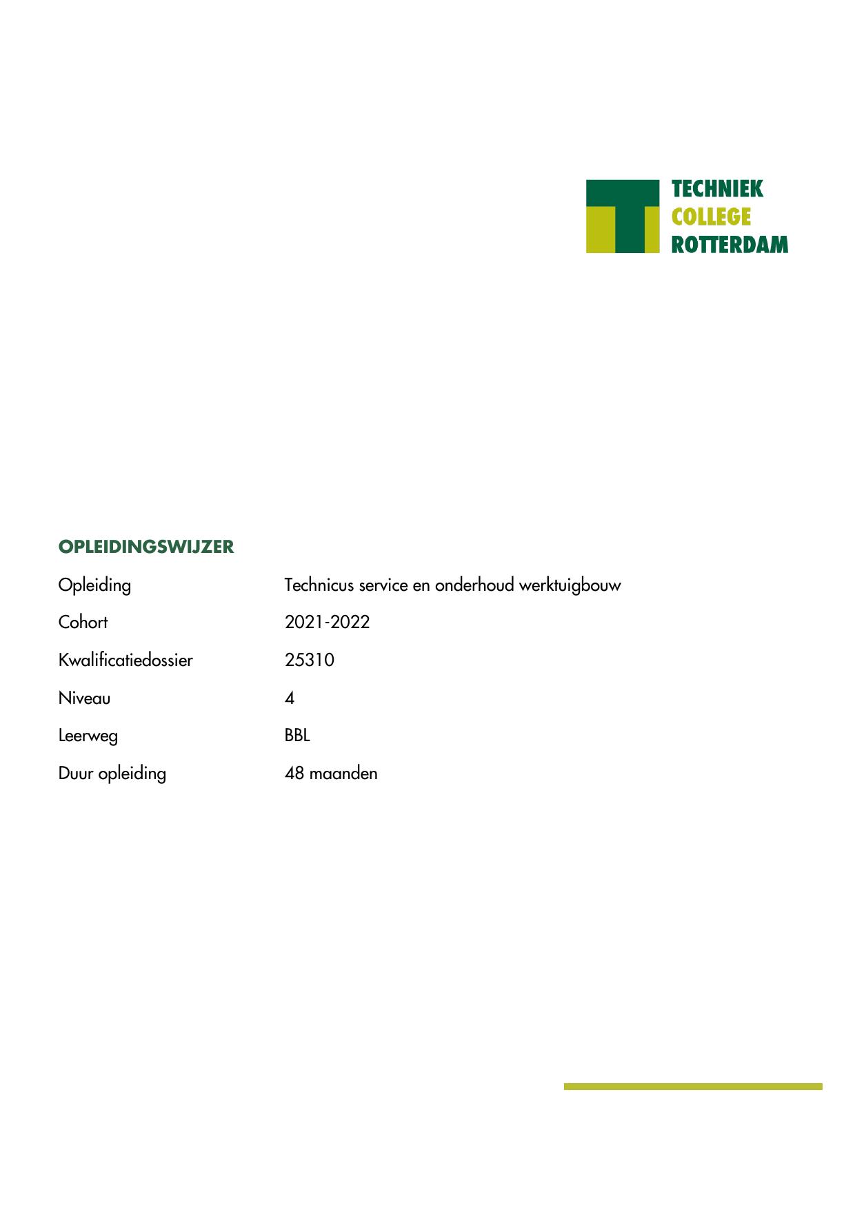 Service- en onderhoudstechniek (Technicus service en onderhoud werktuigbouw) A25310-BBL in cohort 2021-2022