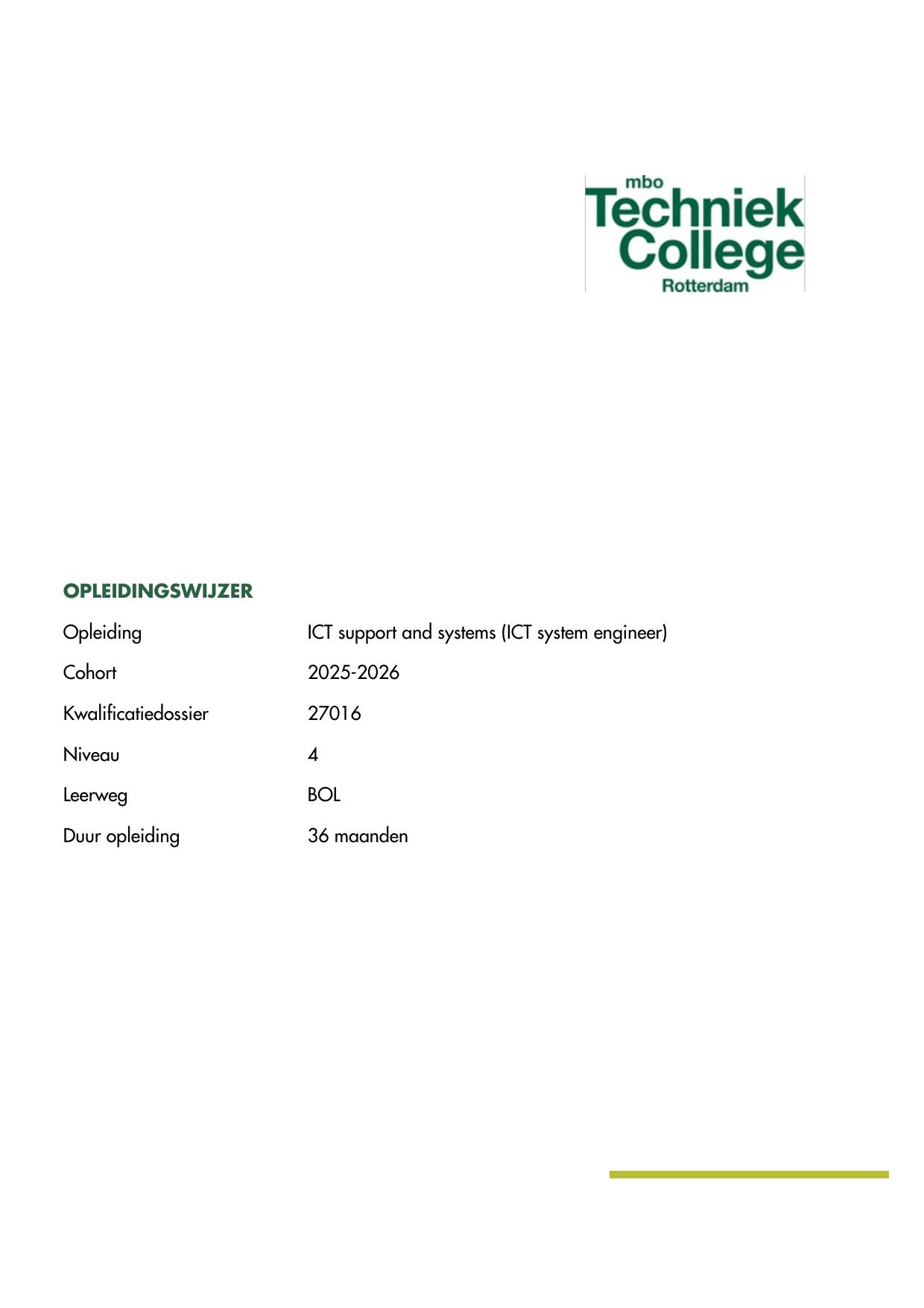 ICT support and systems (ICT system engineer) 27016BBL in cohort 2025-2026