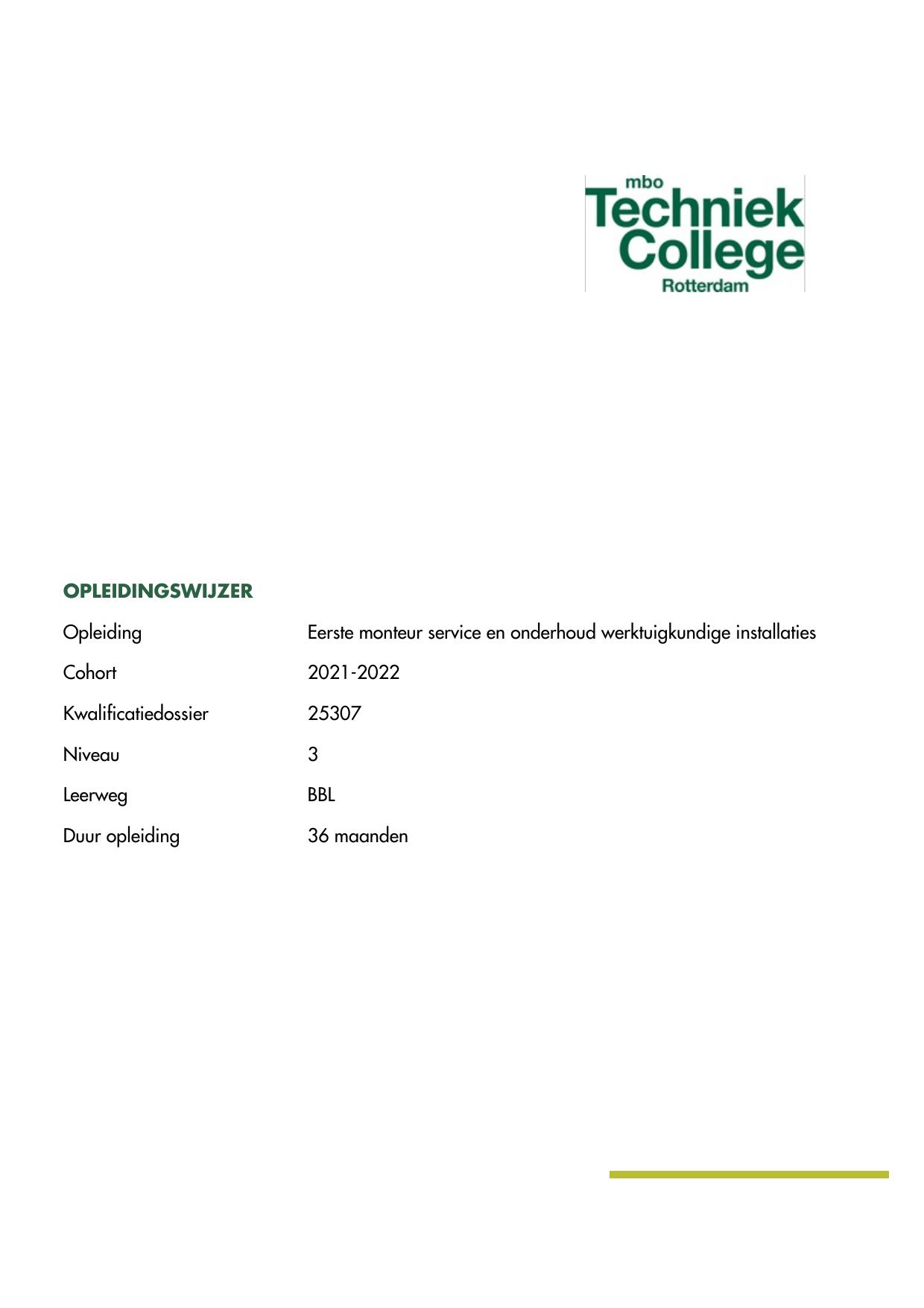 Eerste monteur service en onderhoud werktuigkundige installaties 25307BBL in cohort 2021-2022