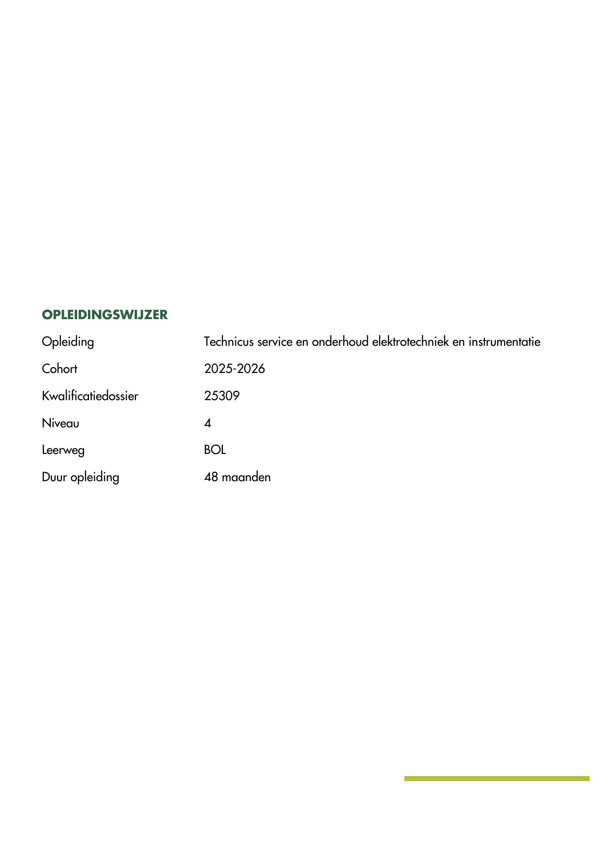 Technicus service en onderhoud elektrotechniek en instrumentatie A25309-BBL in cohort 2025-2026