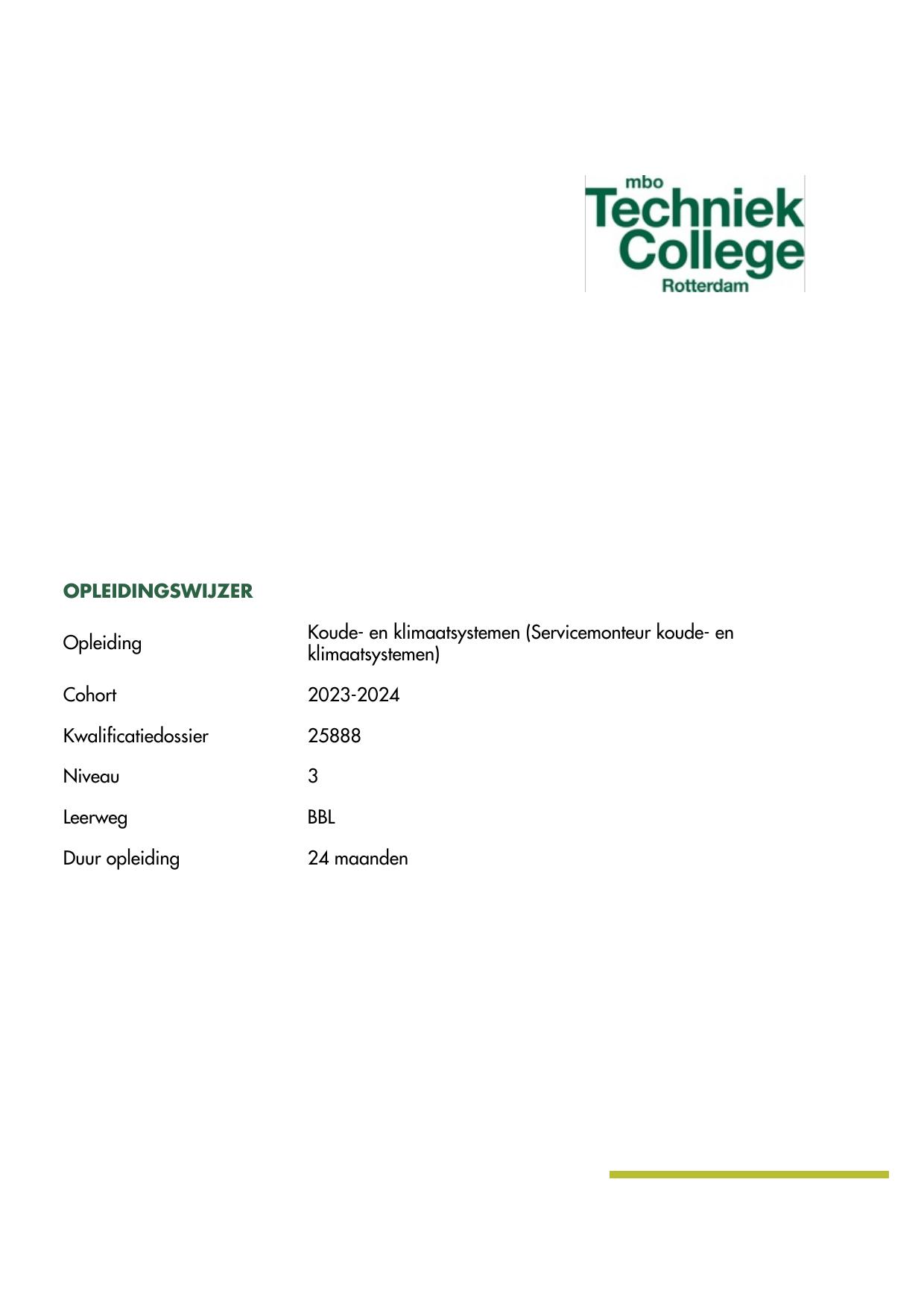 Koude- en klimaatsystemen (Monteur koude- en klimaatsystemen) 25887BOL in cohort 2025-2026