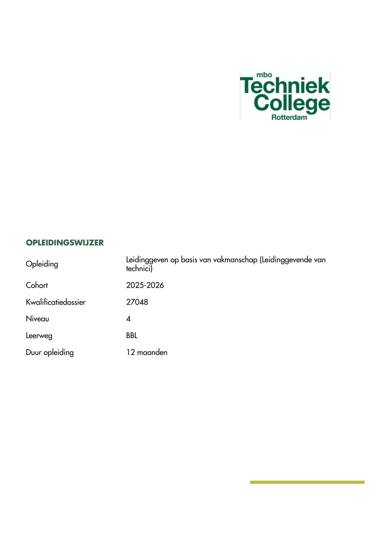 Leidinggeven op basis van vakmanschap (Leidinggevende van technici) 27048BBL in cohort 2025-2026